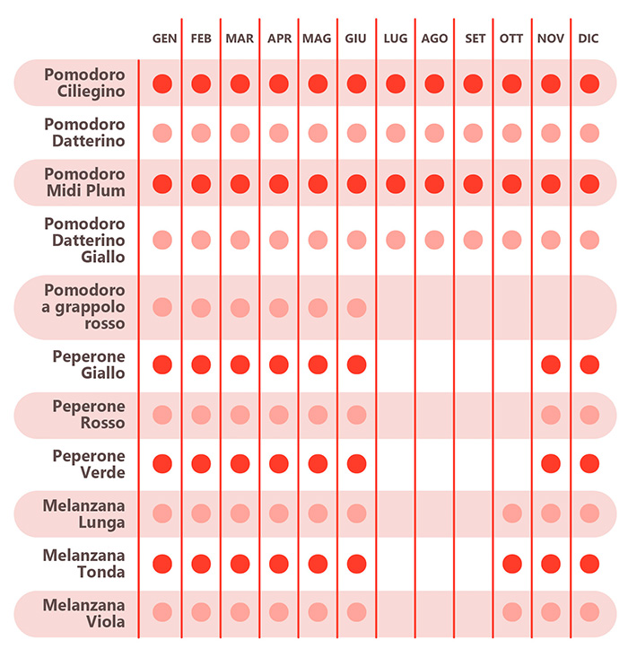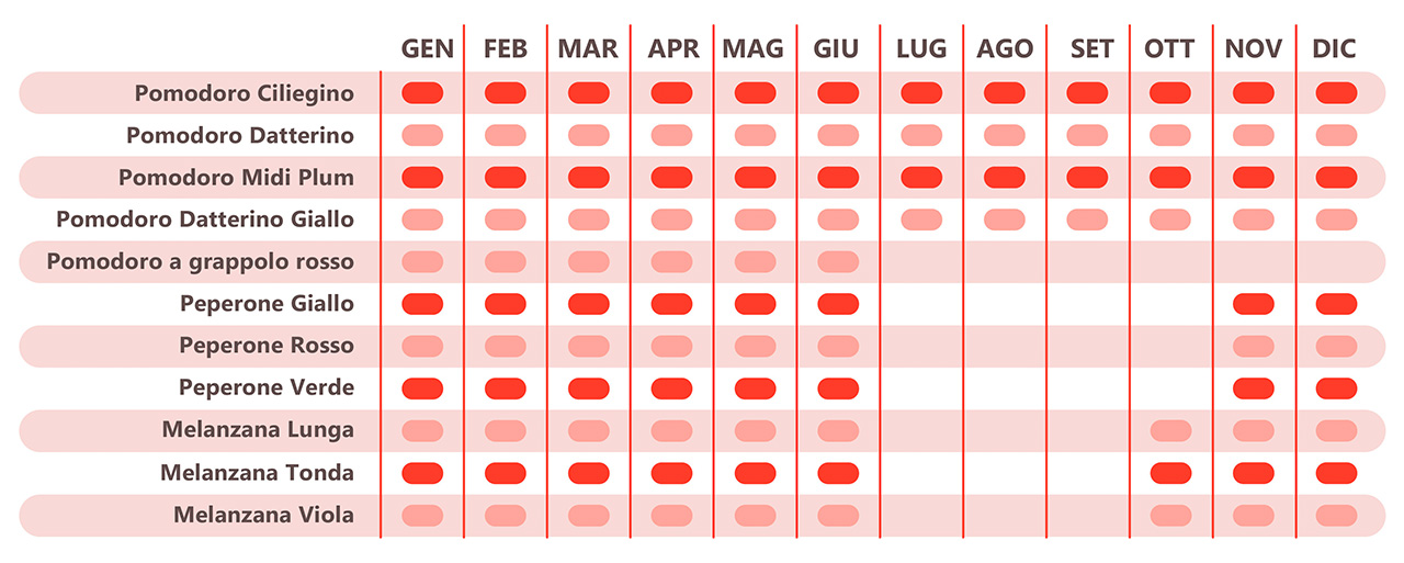 Con le sue ottime qualità nutritive, è ricco di ferro e vitamine del gruppo B. Questa particolare pianta da frutto è caratterizzata dalla polpa morbida, succosa e squisita. Il pomodoro, frutto del mediterraneo, è la pianta da frutto che costituisce l’orgoglio del nostro territorio a livello mondiale.